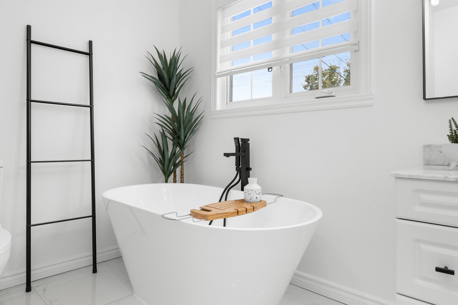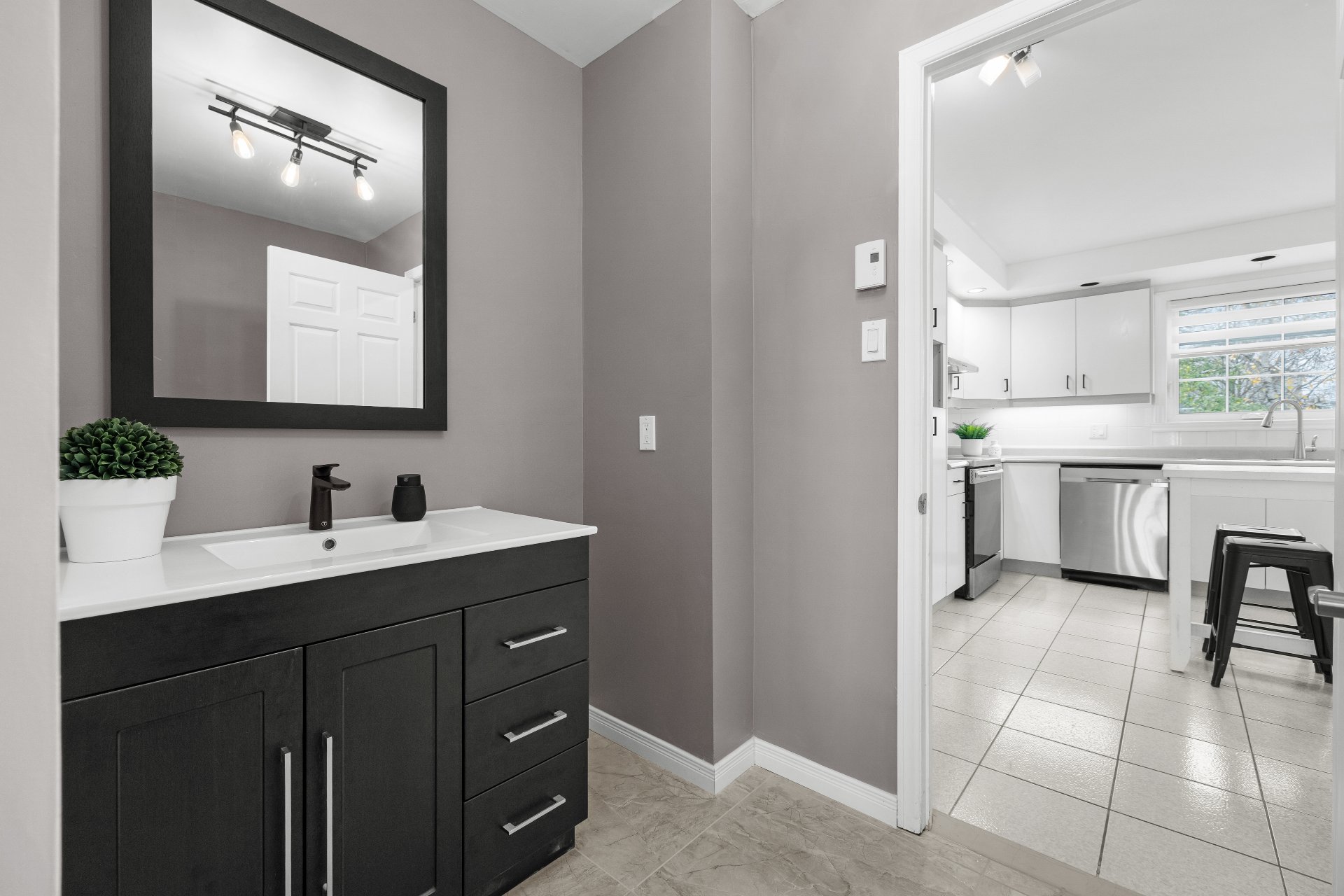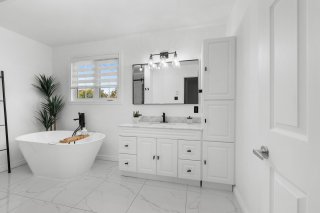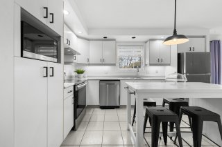 Inclus : Luminaires, ilot de cuisine, Stores et pôles, meuble de tv du salon, sonnette intelligente.
